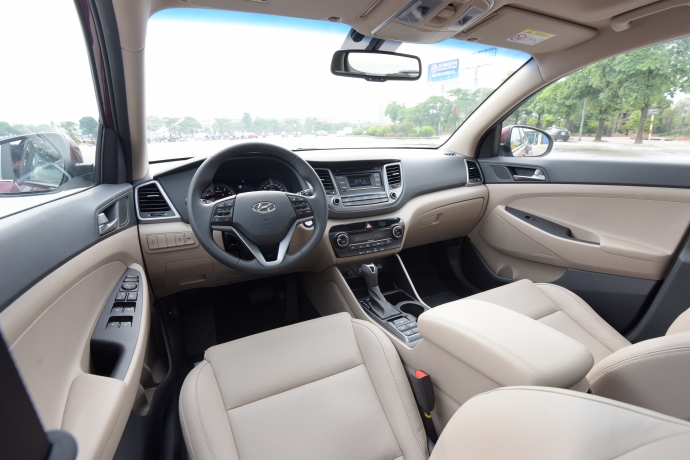 Hyundai Tucson 2016 sở hữu khoang nội thất bắt mắt với ghế bọc da cùng đường may đều và chắc chắn. Hyundai quảng cáo công nghệ ghế da trên xe là loại da thoát khí với những lỗ nhỏ li ti khiến việc ngồi trên xe dễ chịu hơn. Ngoài ra, hàng ghế trước trang bị tùy chọn ghế điện với ghế lái chỉnh 10 hướng, 2 vị trí điều chỉnh dây an toàn cùng ghế hành khách chỉnh 8 hướng. Tuy vậy, việc không có nhớ ghế khiến khách hàng đôi chút tiếc nuối.