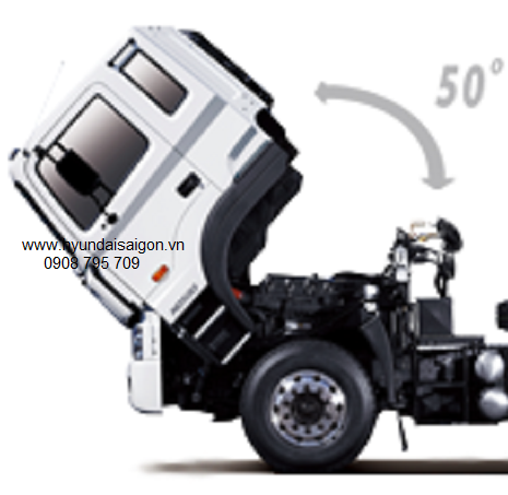 Cabin được thiết kế kiểu lật 50 độ, góc lật lớn thuận tiện và giảm 50% thời gian sửa chữa, kiểm tra máy móc cho xe. Kiểu cabin dòng xe HD của Hyundai được thiết kế theo khi động học,giảm lực cản không khí, tận dụng luồng khí đưa vào bên trong làm giảm nhiệt máy ,tăng hiệu suất làm việc cho động cơ.