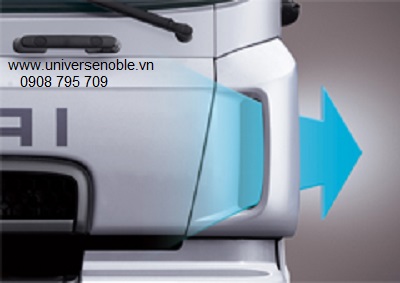 Nói về hốc lấy gió của xe tải Hyundai HD320, điều này có sự tính toán kỹ áp dụng tiêu chuẩn chính xác khí động học, xe lướt nhanh nhưng không tạo sức ma sát với không khí, tiết kiệm nhiên liệu